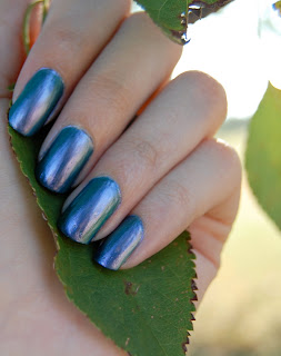 The application on this polish was horrible...it dried so quickly that it was difficult to apply cleanly and it streaked. I got it to look decent once I figured out how to work the formula. I also encountered bubbling and major brush strokes. The brush didn't fan out very well either, which also contributed to the brush strokes. Despite all the issues I still think its pretty and an interesting polish. It is also fairly cheap so if you really like colours like this and can deal with the formula this is a fun polish to wear. From far away you don't notice the imperfections so much. The colour changing effect is just as noticeable indoors as it is outdoors. I found these at Rite Aid and I believe they were 2 or 3 dollars. I have a few more of these I might try out...I hope the formula on the others is a bit easier to work with but I'm not expecting much.